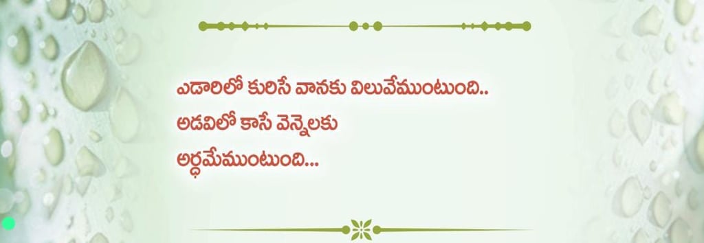 ఎవరు ఏ పని చేసినా ఒక ప్రయోజనం వుండాలి. మనం చేసే ప్రతి పనికీ ఒక అర్ధం పరమార్ధం వుండాలి. పచ్చదనాలను పంచగలిగే నేలతల్లి ఒడిలో కురిస్తేనే వానకైనా, ఆ జల్లులకైనా వాటి పుట్టుకలోని పరమార్ధం నెరవేరుతుంది. ఆస్వాదించగలిగే జీవుల ముంగిళ్లలో కురిసినప్పుడే వెన్నెలకైనా బ్రతుకు సాఫల్యం చెందుతుంది...