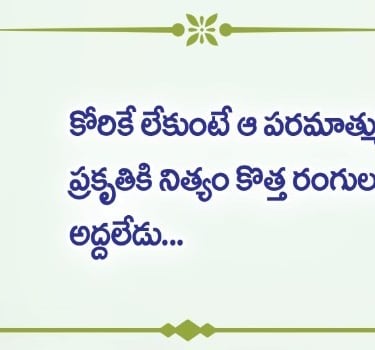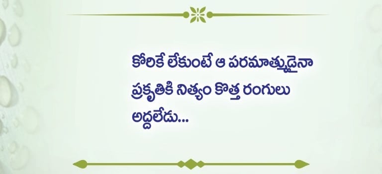బ్రతుకులో ఏ పని చెయ్యాలన్నా ముందు ఆ పనిమీద ఇష్టం కలగాలి. ఆ పని చెయ్యాలనే కోరిక తపన ఏర్పడాలి. అయిష్టంగా చేసే పనులన్నీ అర్ధాంతరంగానే ఆగిపోతాయి. తాను ఎంతో మక్కువతో, ఇష్టంతో ఈ ప్రకృతిని సృష్టించుకున్నాడు గనుకనే భగవంతుడికి ఈ ప్రకృతి మీద అంత ప్రేమ. ప్రతి ఉదయం ప్రకృతిలోని పువ్వులకు ఆకులకు కొత్త రంగులు అద్దుతూ నిత్య నూతనంగా తీర్చిదిద్దుకుంటూ, సంతోషిస్తూ వుంటాడు...