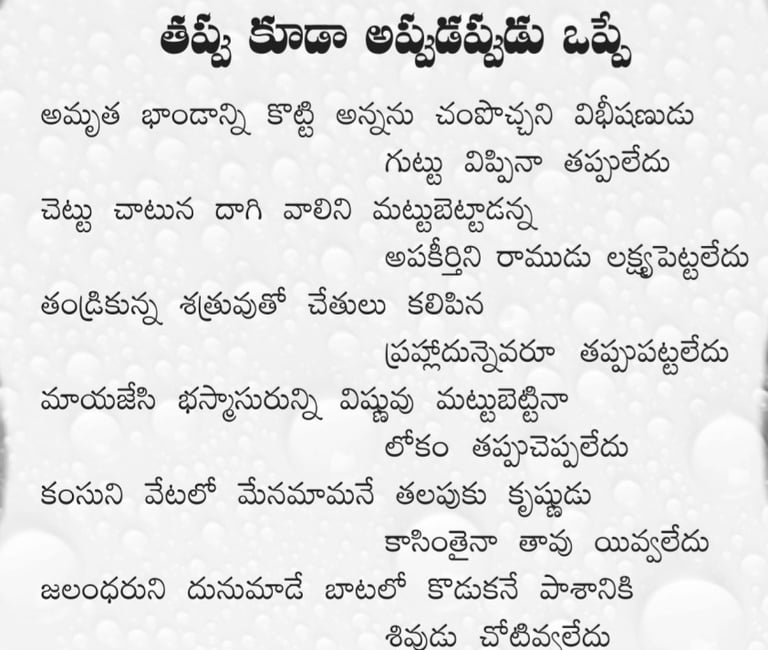 Positive thoughts by shankar annamareddy. మంచిని నేర్చుకుందాం - మంచిని నేర్పిద్దాం. విషయ సంగ్రహం : పురాణాలలోని పాత్రల్ని, సంఘటనల్ని నేటి జీవన విధానానికి ముడిపెడుతూ జీవనవిలువలు, వ్యక్తిధర్మం, కుటుంబధర్మం, సామాజిక ధర్మాలను మంచీచెడుల మధ్య వ్యాత్యాసాన్ని సూచిస్తూ జాతిజనుల ముందుకు తీసుకువచ్చిన కవితలు ఇవి... పాఠక దేవుళ్ళ ఆశీర్వచనాలు లభిస్తాయనే నమ్మకంతో...