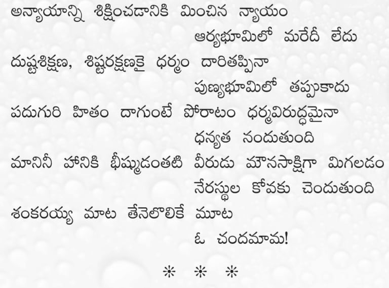 Positive thoughts by shankar annamareddy------- మంచిని నేర్చుకుందాం - మంచిని నేర్పిద్దాం. విషయ సంగ్రహం : పురాణాలలోని పాత్రల్ని, సంఘటనల్ని నేటి జీవన విధానానికి ముడిపెడుతూ జీవనవిలువలు, వ్యక్తిధర్మం, కుటుంబధర్మం, సామాజిక ధర్మాలను మంచీచెడుల మధ్య వ్యాత్యాసాన్ని సూచిస్తూ జాతిజనుల ముందుకు తీసుకువచ్చిన కవితలు ఇవి... పాఠక దేవుళ్ళ ఆశీర్వచనాలు లభిస్తాయనే నమ్మకంతో...